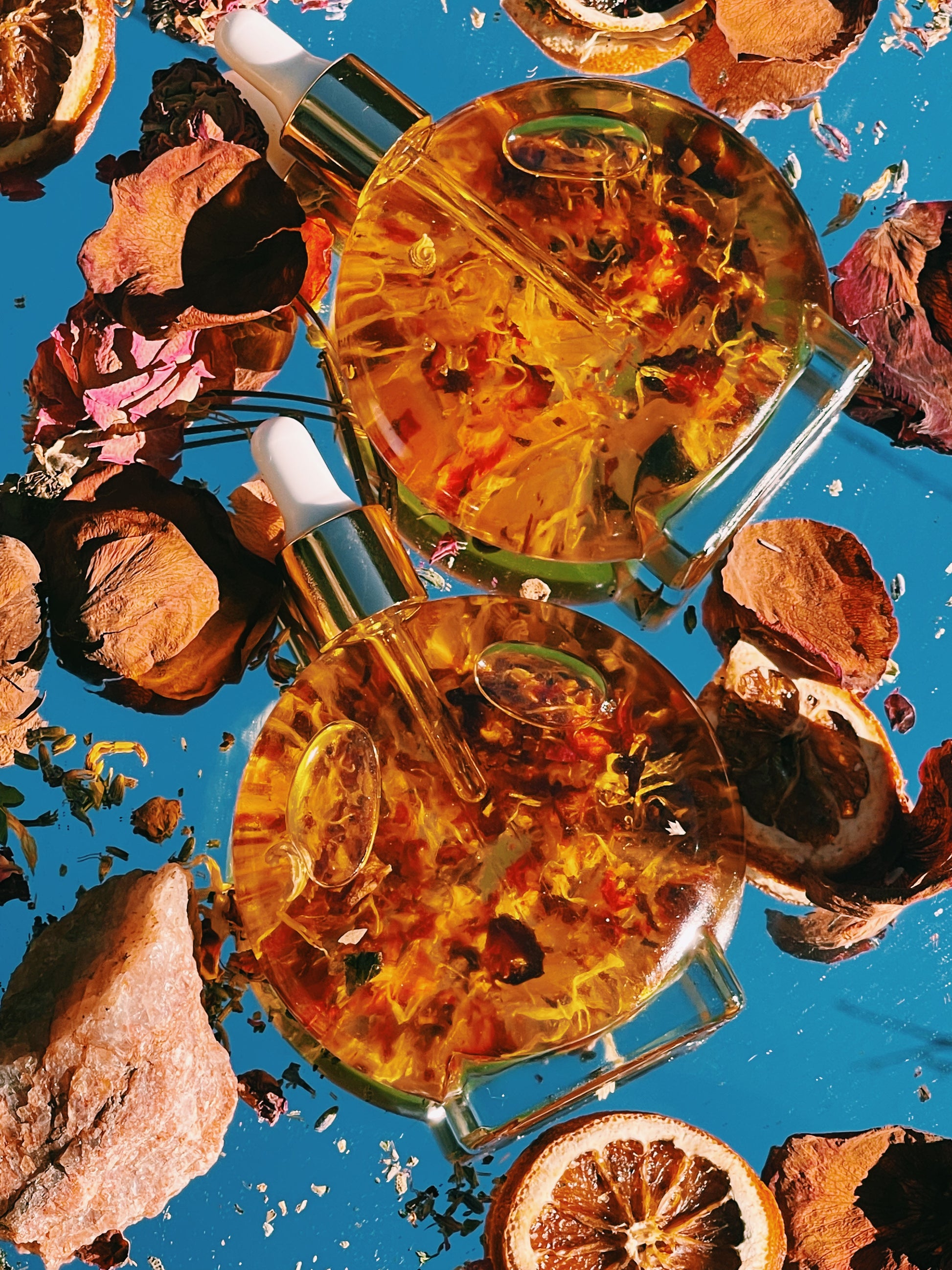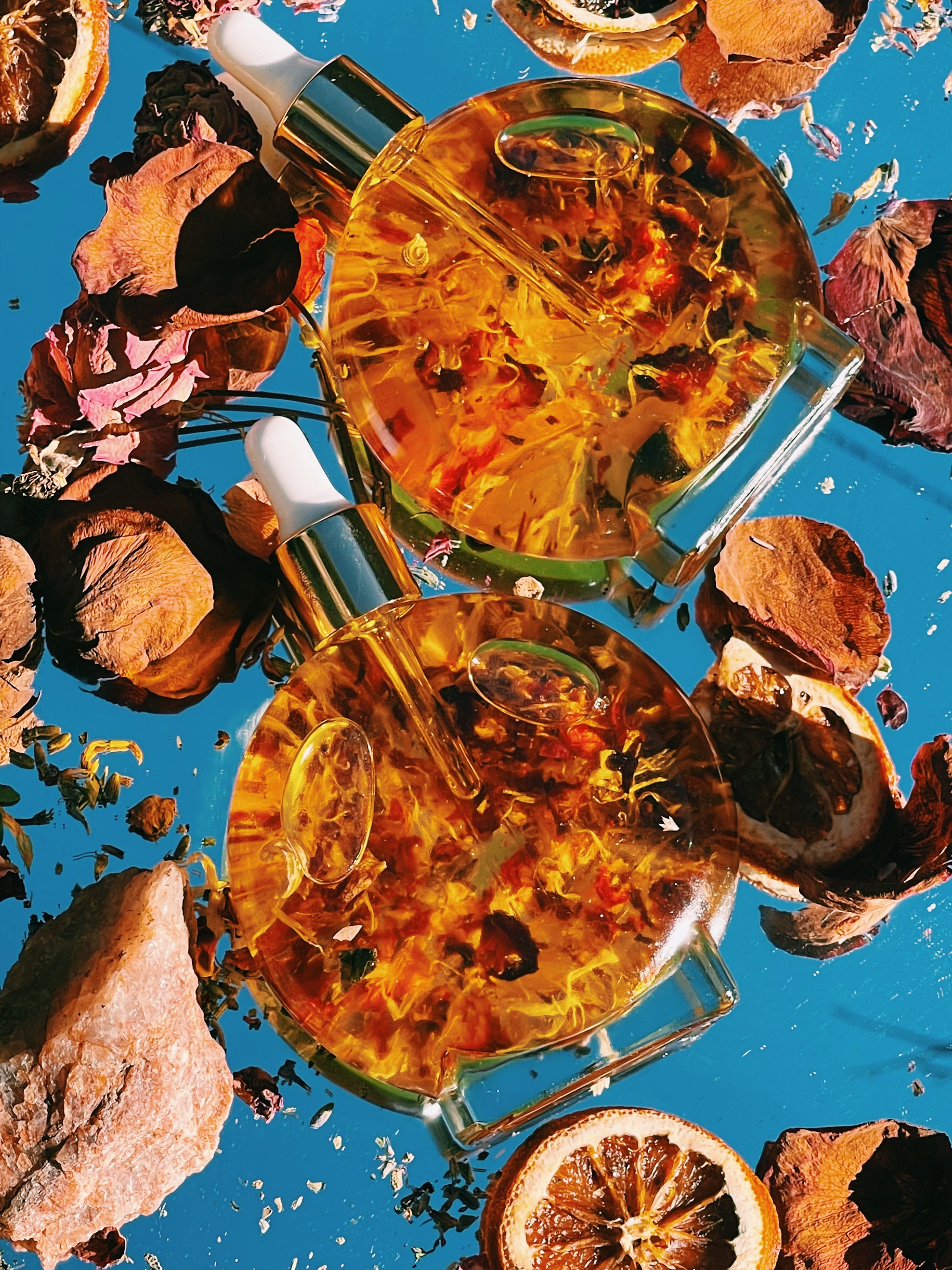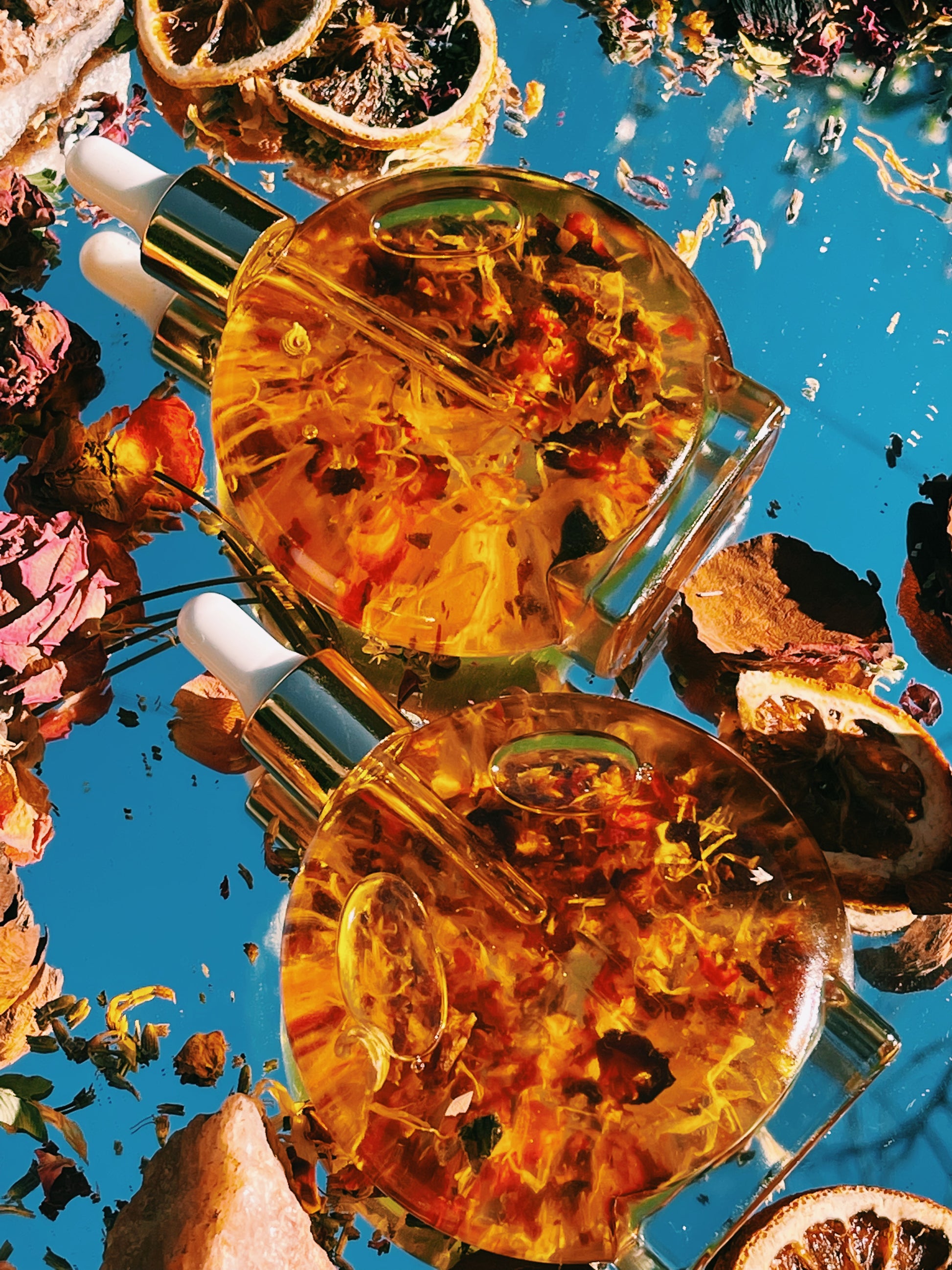 Canyon Nectar is a warm, golden blend of plant oils infused with wild herbs, sun-drenched resins, and sweet botanicals — made to nourish the skin and restore vitality.